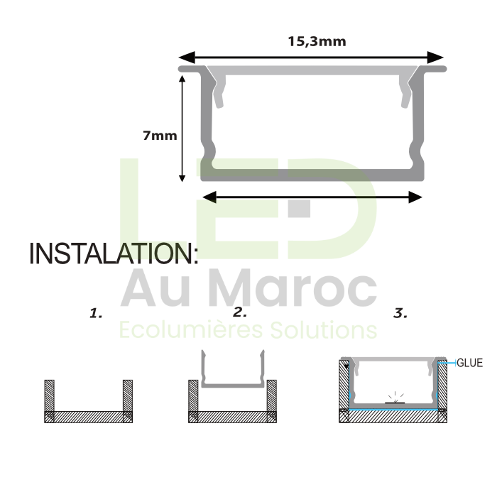 Profilé LED aluminium DE SOL ENCASTRE 7×15.3×12.3 mm PL-PR120