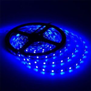 Le Ruban LED est une solution économique et durable pour un éclairage sur mesure. Ce ruban LED de 5 mètres de long « bleu » s’installe avec une grande facilité grâce à sa souplesse et sa face adhésive conçue pour satisfaire à tout type d’architecture. On peut ainsi le disposer dans des angles, au plafond, incliné… Son étanchéité aux projections d’eau et aux poussières autorise son usage dans tout type de locaux. Le ruban LED revêt un aspect décoratif et fournit un éclairage harmonieux qui convient aussi bien à un intérieur qu’à un commerce. Il s’intègre également bien dans des lieux à fort passage tels qu’un hôtel ou une résidence, où la dépense énergétique leur accorde la préférence sur d’autres types d’éclairages décoratifs. Enfin le ruban LED est aussi un éclairage pratique et résistant qui trouvera sa place comme signalétique lumineuse sur des chantiers, des parkings, comme éclairage de secours, ou tout autre usage pratique.